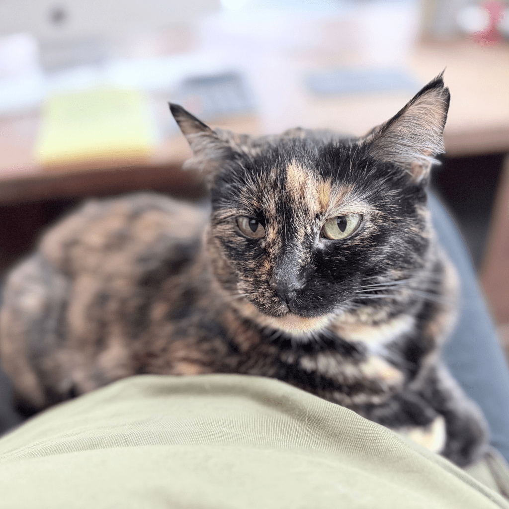The Devoted Matron As the mother of the pair, Cinder is the calm, grounding force of the duo. She is a master of the “gentle lean,” often pressing against your leg to offer a silent, steady hello. Cinder has a way of sensing when someone needs a bit of extra comfort while they wait for a repair or browse the gallery.